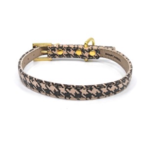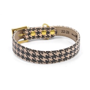 Beautiful, unique leather collar with a timeless, most iconic Coco Chanel pattern. The collar looks great on any decorative breed or elegant mutt. In a set with a city leash and stylish poop bag carrier from the same series, will make your furry friend a standout luxury dog.